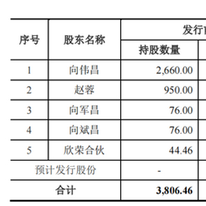 招股书披露,朗斯家居本次发行前总股本为3806.46万股,向伟昌、赵荣夫妇合计持有3610万股,合计持股比例高达94.84%。本次拟公开发行股份数量不超过1270万股(具体以中国证监会核准的股票发行数量为准)。发行后,向伟昌、赵荣夫妇合计持股数量为3610万股,合计持股比例为71.11%。制造中心邳州生产基地总监向军昌与制造中心中山生产基地总监向斌昌均持股76万股,持股比例为1.5%。