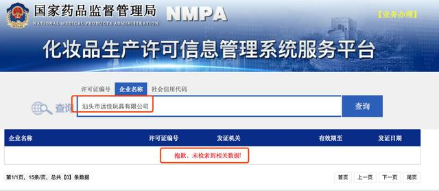 客服回复的图片与该商品评论区买家晒图中一致,彩妆盒封面显示执行标准为GB6675 1-2014等,记者查询到,此为玩具安全国家标准。包装显示的制造商为汕头市远佳玩具有限公司,与根据3C编号查询到的企业名称不一致。不过在国家药品监督管理局“化妆品生产许可信息管理系统”,记者分别输入两家公司名字,均未查询到相关数据。