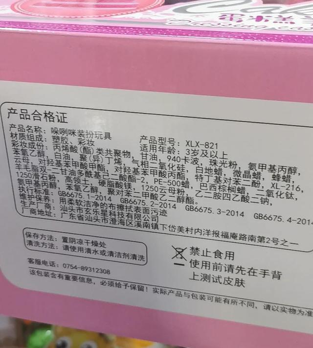 卖家向记者介绍,店内儿童化妆品在一百元左右,出厂厂家相同,只是包装有区别。商品包装显示厂商为广东省汕头市玄乐星科技有限公司,地址位于汕头市澄海区。“玩具基本都是广东那边出的。”卖家表示,“你放心,儿童用绝对没问题,不能用就不会给你推荐,我们也不会卖。我们进出货都很多,很多人买。”