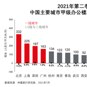 以下是仲量联行发布的“2021年第二季度主要城市甲级写字楼租金排名”。