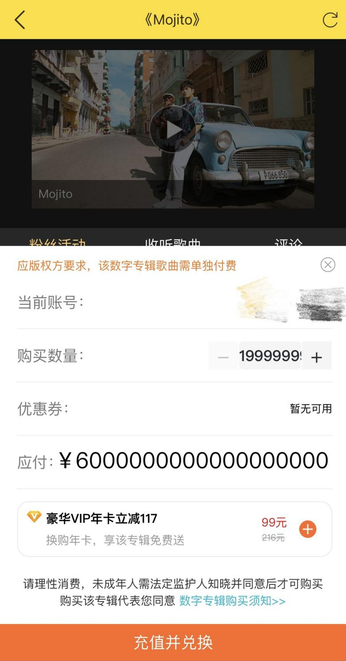记者尝试购买周杰伦《Mojito》专辑发现,其购买数量并未设上限,单个用户可以无限次支付。
