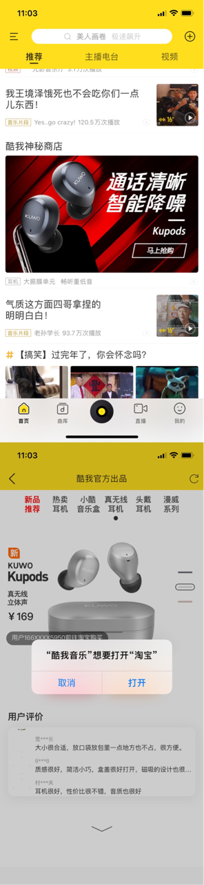 记者搜索发现,在酷我音乐的推荐内容池中夹杂着大量购物广告,用户点击后会自动跳转至第三方购物平台。