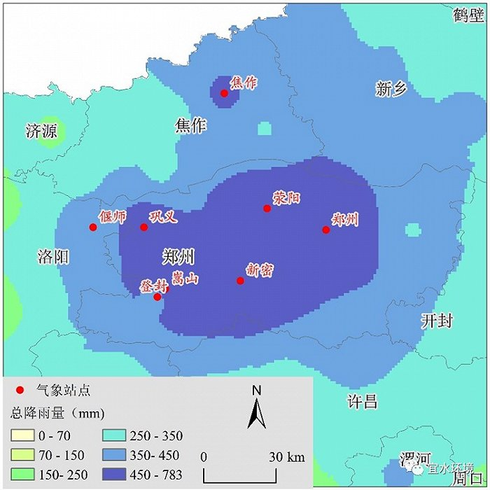 根据张建云院士报告解释,这个地区的地形条件与特殊气候的组合可能是促成极端降雨的主因。