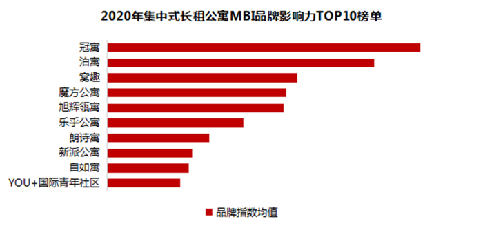 迈点研究院数据统计显示,2020年集中式长租公寓品牌影响力排名前十的品牌分别是:冠寓、泊寓、窝趣、魔方公寓、旭辉瓴寓、乐乎公寓、朗诗寓、新派公寓、自如寓和YOU+国际青年社区。其中,冠寓、泊寓、窝趣、魔方公寓和旭辉瓴寓位列第一梯队,年度品牌指数均值均超过200;房企系位列榜单前两位;前十品牌中,除了窝趣和自如寓分别为酒店系和中介系外,房企系和创业系各占四席。2020年,集中式长租公寓品牌的竞争愈加激烈,尤其是房企系和创业系,随着行业整合不断加速,政企合作进一步增加,集中式长租公寓品牌竞争进入白热化阶段。