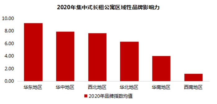 四、集中式长租公寓区域性品牌影响力表现:华东地区品牌影响力最强