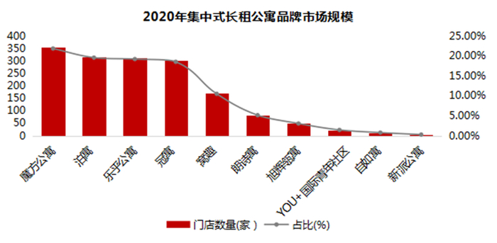 2020年,集中式长租公寓由于运营成本较低、品牌效应与规模效应强,受到疫情冲击较小,扩张步伐明显加快。