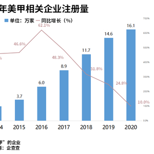 从近十年美甲相关企业发展状况来看,2020年是企业注册量的最多的一年,全年共注册了16.1万家企业,同比增长了10.0%。