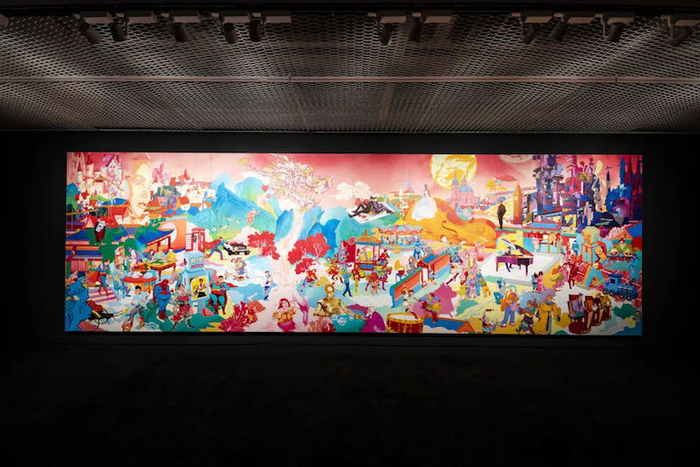 展览几乎所有作品都色彩明快,也均演绎着中西融合、波普、跨界等关键词,但其中另一个名字却凌驾所有关键词之上,这个名字是“周杰伦”,展览名“生活·范特西”也显而易见来自周杰伦的专辑。这位艺术家的名字真正“破圈”,很大的原因也是周董。