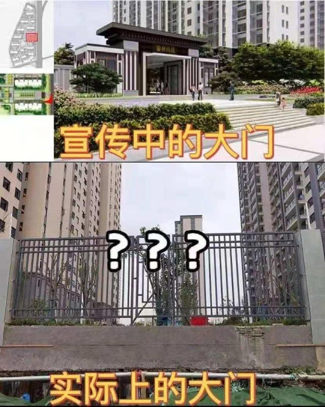 说起武汉翰林尚苑的“门”,该小区购房人陈亮(化名)还告诉记者,“不仅是小区大门,开发商销售时宣传的楼栋入户大厅门也与现实大不一样,原本的宽敞通透的大厅门不仅缩水变窄,旁边的装饰也大不相同,看上去完全不是一种风格。”