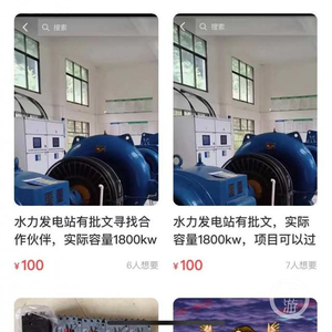 记者通过二手交易平台联系了多个水电站卖家,对方均表示自己挂在二手交易平台的水电站、发电机组等均为真实存在的标的,目前均在正常工作中,相关的审批条件也均符合。一位卖家透露:“我的电站证照齐全,手续都有,买下来之后绝对能够马上投入使用,一天都不浪费。”