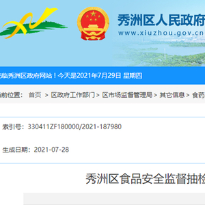 原标题:浙江省嘉兴市秀洲区52批次食品抽检信息公示(2021年第13期)