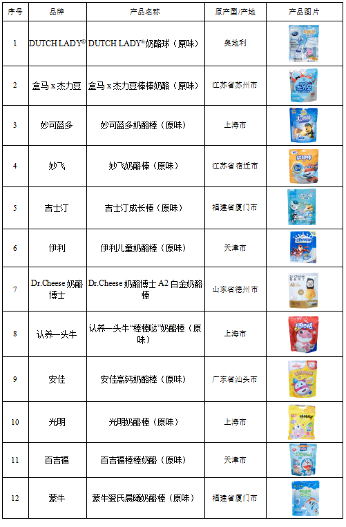 12款奶酪棒均符合国标要求