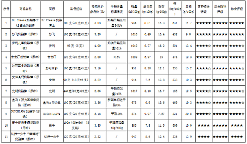 12款奶酪棒脂肪含量属正常水平