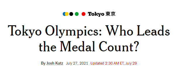 事实上,《纽约时报》自己也注意到了这个问题,在7月27日的一篇文章中,《纽约时报》指出,全世界大多数地方都以金牌定排名,而美国媒体则以奖牌总数定排名。