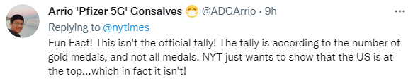 用奖牌总数而非金牌总数来决定排名,虽然保住了美国的榜首位置,却因此遭到了大量吐槽。有网友指出,这不是国际奥委会官方排名方式,《纽约时报》的做法只是为了显示美国第一。