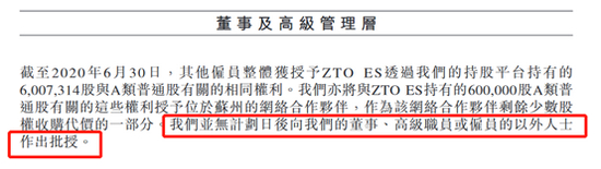 除了股权激励计划,中通快递还设立了员工持股平台,并已向专门用于中通股权激励的持股机构ZTO ES發行16,000,000股普通股股票,价格合计1200万美元。董事会成员根据员工的业绩表现,决定股份的奖励人选,ZTO ES将会把所持股份的相应份额转移至被激励人的名下。这可以保证用于奖励的股份的独立性及安全性,也是公司对用于股权激励的股份进行管理的常见方法。
