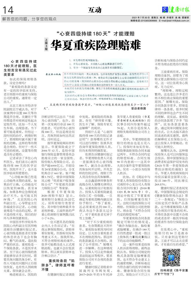 原标题:“心衰四级持续180天”才能理赔,华夏重疾险理赔难