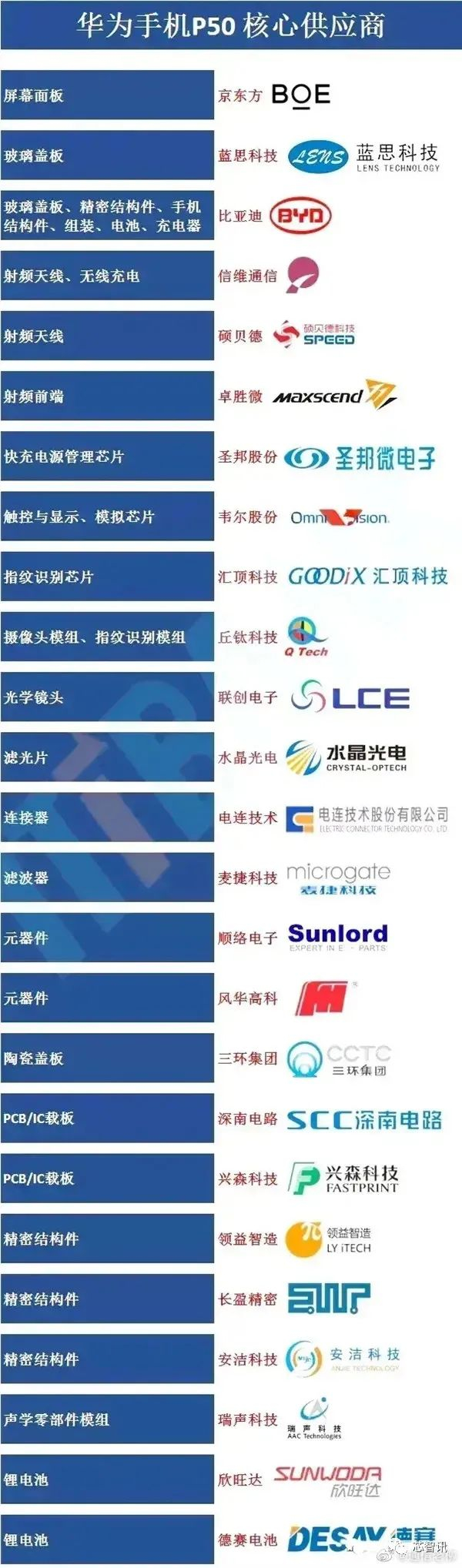 华为P50系列手机核心供应商