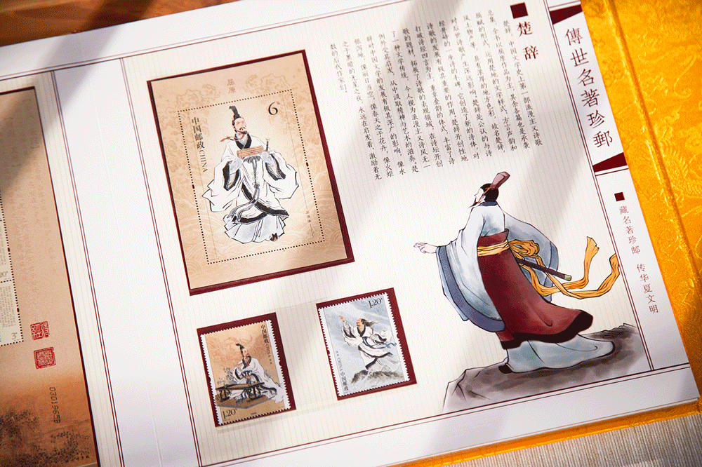 它集结了自1989年~2018年,近30多年来发行的古代文学名著珍邮,包含诗经楚辞、唐诗宋词、四大名著……等众多名作。