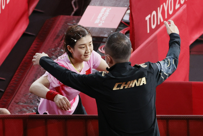 对师徒二人而言,这次拥抱像是一种情绪的释放,而这个相拥画面的背后,也藏着中国乒乓球在东京奥运一路走来的许多故事。