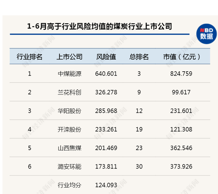 煤炭行业平均风险值居首位