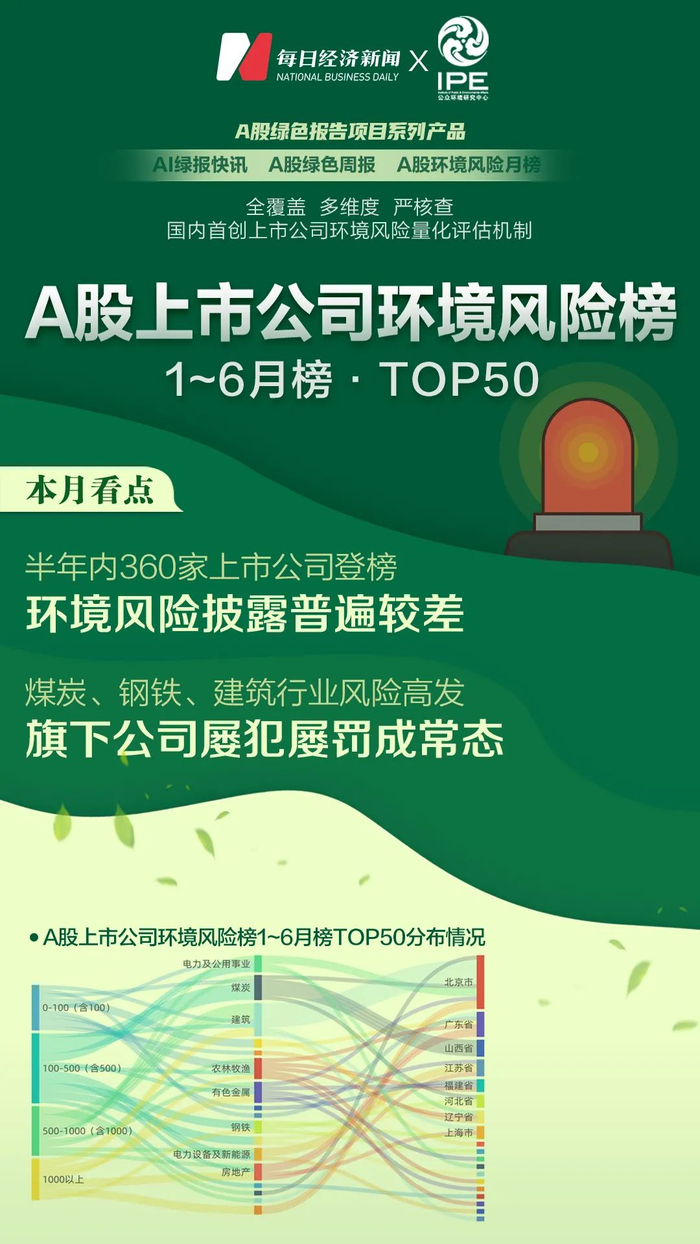 A股环境风险榜|上半年360家公司登榜,哪家风险最高,谁又在刻意“漂绿”?
