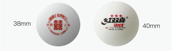 红双喜不同直径的乒乓球