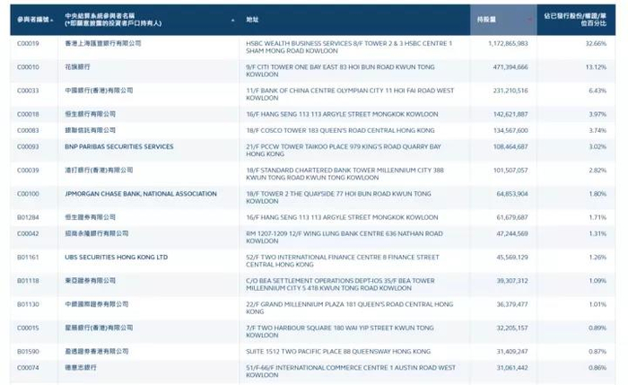中央结算系统持股记录显示,目前持有最多盈富基金的是汇丰银行,持股数为11.73亿股,占已发行股份33.34%。如果只看美资背景的公司,持股量较多的包括花旗银行、摩根大通、盈透证券等,持股占比分别为13.12%、1.8%、0.87%。