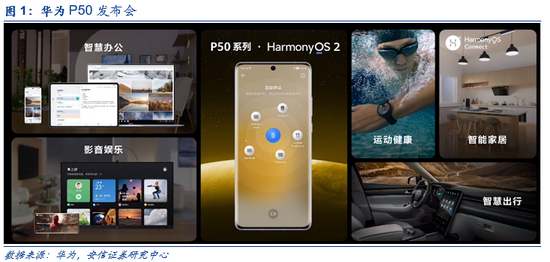 P50手机发布,鸿蒙已升级用户达4000万。7月29日晚间,华为正式发布P50系列旗舰手机,搭载HarmonyOS 2操作系统。据华为消费者业务CEO余承东介绍,6月2日至今,HarmonyOS 2.0已升级用户达4000万。我们曾在前期报告《鸿蒙2.0降临,AIoT全场景打通曙光初现》中指出,作为贯穿华为“1+8+N”全场景体系的重要一环将承担更为重要的角色,华为鸿蒙生态的规模化落地将是AIoT时代我国终端基础软件弯道超车的重要拐点。华为消费者业务软件部门总裁王成录曾于4月7日在TEDx主题会议上透露,“保守估计”鸿蒙OS将会在2021年底覆盖至少3亿套设备。如今,鸿蒙OS 2.0仅在上线两个月的时间就交出了一份4000万升级用户的答卷,这是在终端国产操作系统领域空前的成就。