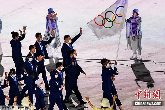 7月23日,第32届夏季奥林匹克运动会开幕式在日本东京新国立竞技场举行。图为中国体育代表团入场。中新社记者 韩海丹 摄