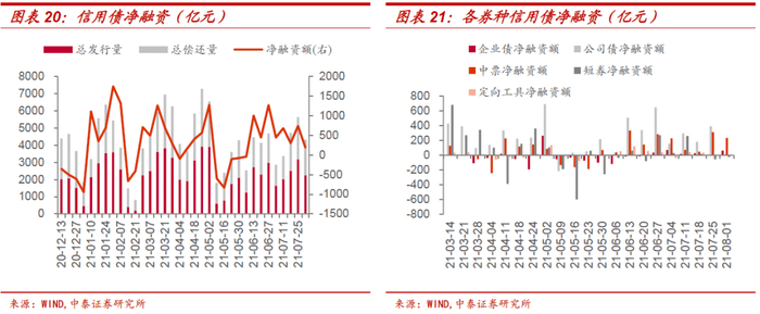 具体来看,企业债、公司债、中期票据、短期融资券及定向工具净融资额分别为60.52亿元、9.73亿元、230.95亿元、-24.23亿元、-87.10亿元。本周企业债、短期融资券净融资额有所增加,公司债、定向工具和中期票据净融资额均较上周大幅下降。