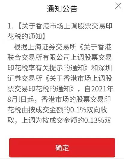 相关提示表明,从2021年8月1日起,香港市场的股票交易印花税税率将正式调整。
