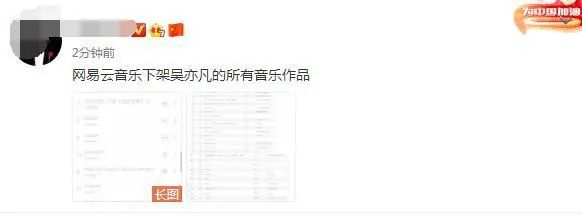 之后,有网友又发现,吴亦凡的所有音乐作品已经被网易云音乐全部下架,qq音乐平台则显示没有这位歌手,但部分单曲仍可播放。