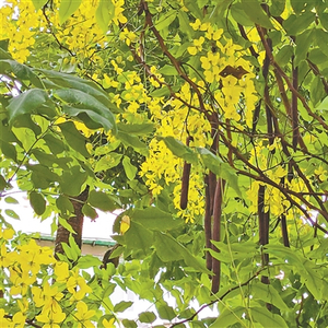 赤日炎炎似火烧的日子里,许多花木都停止了开花,转入“歇夏”期,此时却有一种植物,开出满树金黄色的花,它就是腊肠树。