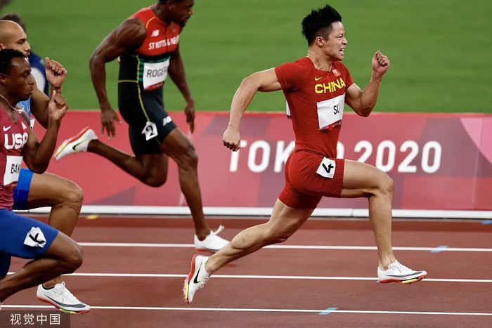这其中固然有人种、天赋的优势差异,但是当刘翔成为110米栏的霸主,当苏炳添以32岁的高龄破掉亚洲纪录,我们就该明白,在跑道上,黄种人一样能打破天花板。国力的增长、训练理念的进化、对国外先进经验的学习、苏炳添的过人天赋和不懈努力,共同造就了9秒83这个新的传奇。