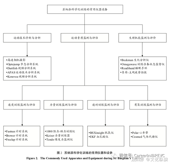 以笔者自身为例,2017年11月与Randy教练合作之初,Randy教练所做的第一件事情就是参照“冠军模型”对笔者的体能和技术状况进行全面的诊断和分析。然后,针对笔者体能 (股后肌群力量和踝关节力量不足、主动下地速度和发力速率偏慢) 和技术 (起跑姿势不合理、前7步步长偏小、扒地技术不合理、全程呼吸和速度节奏不佳) 方面存在的问题,制订了针对性的训练方案。经过一年多的针对性训练,笔者在上述技术参数和身体素质方面取都得到了明显进步,这也正是笔者取得突破的关键所在 (表1) 。在日常训练过程中,Randy教练会以训练前Omegawave评测结果和运动员的主观感受调查结果为依据,确定运动员当天的速度、耐力、爆发力、力量、协调和技术训练的负荷量度, 以保证运动员在避免损伤和过度训练的前提下获得最佳的训练效益。在专项素质训练过程中,Randy也会通过多种科研仪器设备进行全面监控 (图2) ,以确保训练负荷量度和运动技术的最佳化。