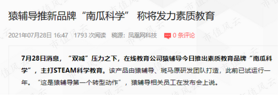 再比如猿辅导,7月28日,猿辅导就正式上线了素质教育新品牌“南瓜科学”,该品牌主打STEAM科学教育,专为3-8岁儿童提供科学启蒙教育。