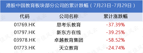 港股方面,思考乐教育、新东方在线、卓越教育集团等,跌幅都在30%以上。