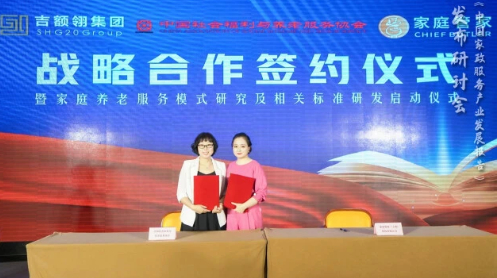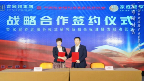 中国社会福利与养老服务协会和上海吉额翎企业(集团)有限公司及家庭管家(上海)科技有限公司,就开展家庭养老模式和服务标准研发的合作进行了签约。