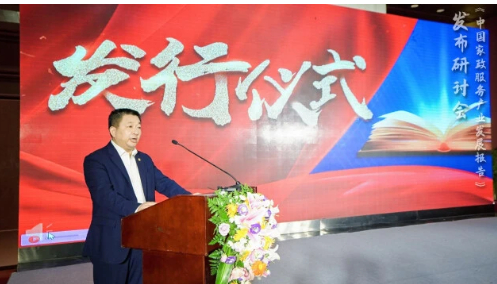 在现场嘉宾的共同见证下,上海吉额翎企业(集团)有限公司董事长于海群宣布《中国家政服务产业发展报告》正式发行。
