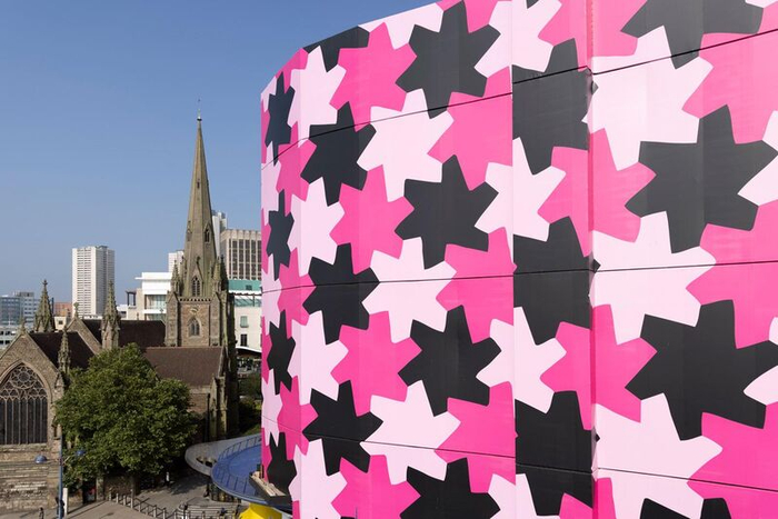 近日,据《艺术新闻》(The Art Newspaper)报道,英国艺术家奥斯曼·尤瑟夫萨达(Osman Yousefzada)用五吨的帆布包裹了英国伯明翰的Selfridges百货商店,创造了世界上最大的公共艺术作品之一。这个粉色黑色相间的星形设计名为《无限图案1》(Infinity Pattern 1),让人想起伊斯兰艺术中的几何设计。 《无限图案1》