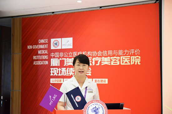 同时,她向评价专家组作续评创建工作的汇报。从医院的发展历程、组织架构、业务开展、企业文化、医疗质量管理、五星创建工作等方面概述了医院的总体情况,重点介绍了厦门美莱的企业文化、医疗质量管理和五星创建的具体工作。