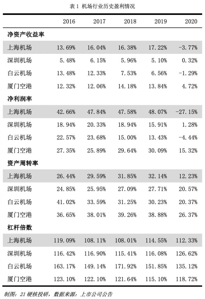 回看疫情前,上海机场的经营情况十分良好,被市场称为“核心资产”之一。从历史盈利情况看,上海机场的净资产收益率保持在15%以上,明显优于机场行业的其他企业。拆分来看,上海机场优异的净资产收益率主要来源于远超行业的净利润率,显示出上海机场出众的盈利能力。同时,上海机场的杠杆倍数多年来一直位于行业最低,且其负债均为经营负债,连续多年保持接近于0的有息负债率,侧面反映出上海机场的自有业务具备非常优秀的造血能力。