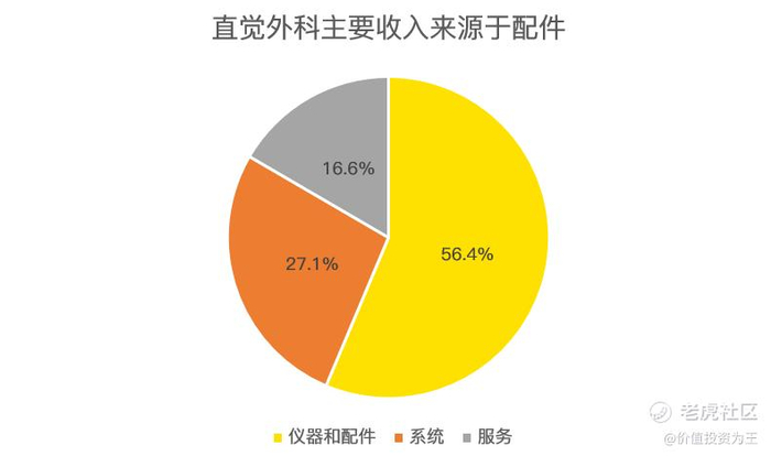 从直觉外科的财报上看,机器人系统销售只占总收入的27%,大头主要来源于配件和售后服务等。