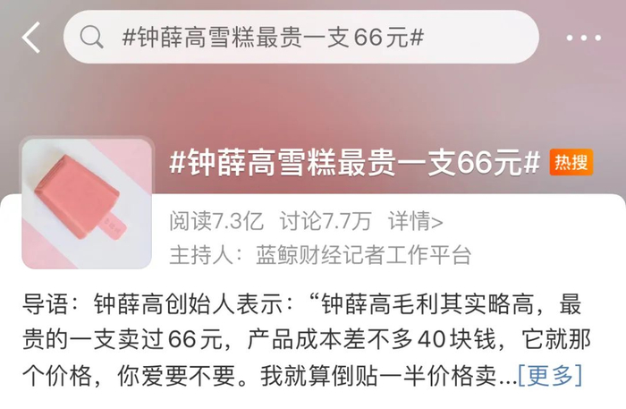 钟薛高雪糕曾因价格太贵登上微博热一