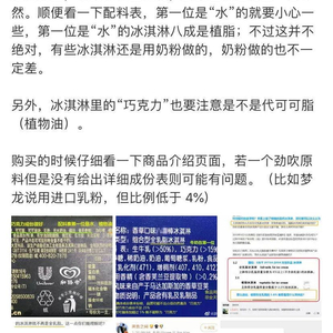 果壳网科普作者钟大厨认为,乳脂和植脂并没有严格意义上的好坏之分,说“植脂不如乳脂”,很可能是混淆成了“植脂末”,然后就脑补成了氢化植物油、反式脂肪。这点梦龙也在此前流传的回应中有所解释。