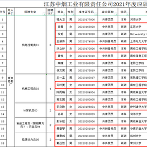 查询各卷烟厂官网,我们发现无论是在云南、甘肃这类经济欠发达地区,还是江苏、浙江等较发达地区,都有不少名校生甚至硕士生应聘一线操作工。以2021年校招为例,江苏中烟下辖的南京卷烟厂“生产操作”类岗位今年共录取21名应届生,硕士9人,占比42%,其中不乏河海大学、南京林业大学等双一流高校。