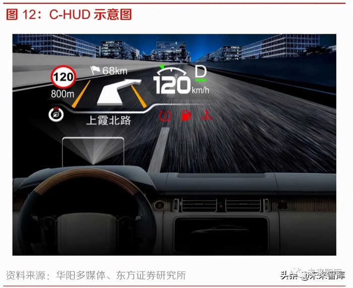 (3)外置的树脂玻璃在汽车发生 事故时可能对驾驶员造成二次伤害。基于这些缺陷,C-HUD 逐渐被汽车市场淘汰。