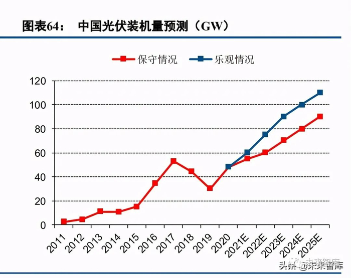 除此之外,考虑到去年我国集中式光伏电站装机规模达到 32.7GW,我们假设今年集中式光伏电站并网规模 至少能够达到 35GW。分布式除户用以外,今年工商业分布式装机需求假设在 3-5GW,我们预计今年我国光伏 装机容量合计将达到 55-60GW。