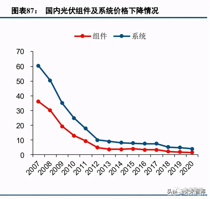 从光伏行业近些年的发展特点可以看出,行业当前快速发展的核心因素是技术驱动降本提效。从近年来降 本增效的成果来看,单晶取代多晶、P 型电池提效成果显著。根据 CPIA 的统计,2020 年 PERC 电池单晶电池 量产平均转换效率已经达到 22.8%,同比提升 0.5 个百分点;同时光伏系统和组件价格相比于 2019 年也分别下 降了 12.3%和 10.3%。